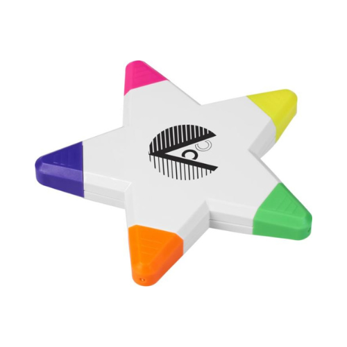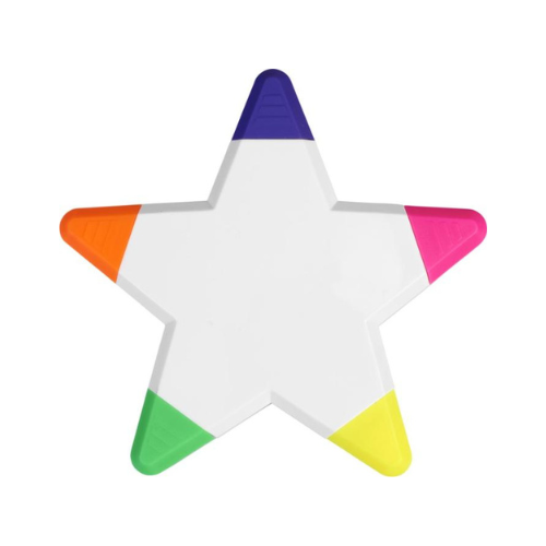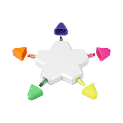 Surligneur en forme d’étoile à 5 branches, avec cinq couleurs vives intégrées dans un seul modèle.