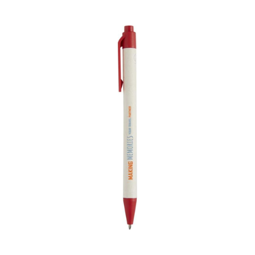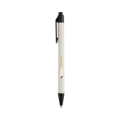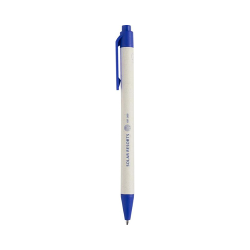 Stylo bille écoresponsable, doté d’un clip et d’une pointe en plastique recyclé, associé à un bouton et un corps en bambou naturel, pour une écriture élégante et respectueuse de l’environnement.